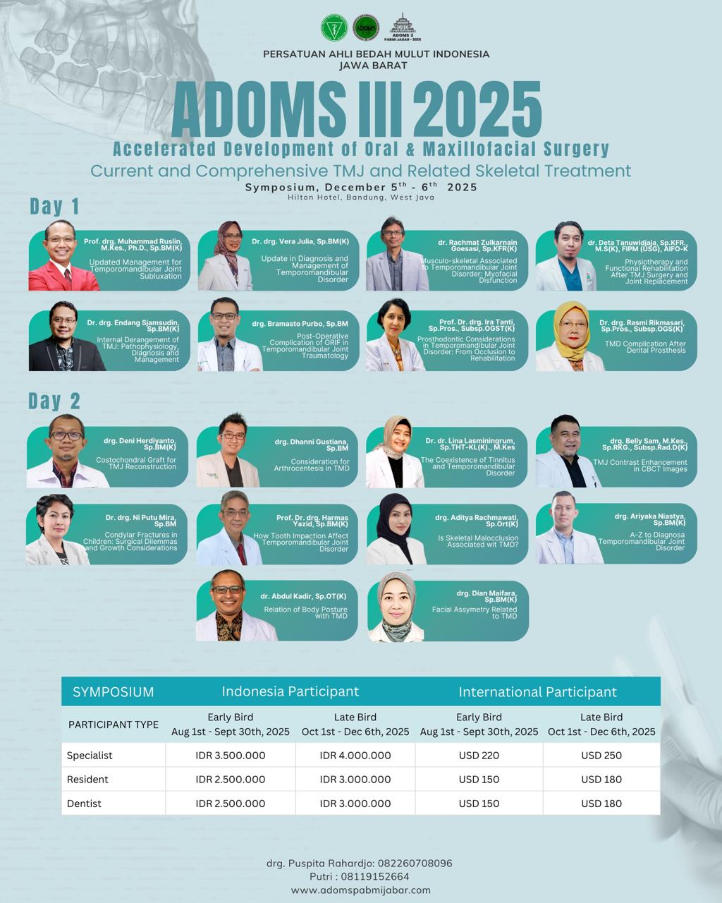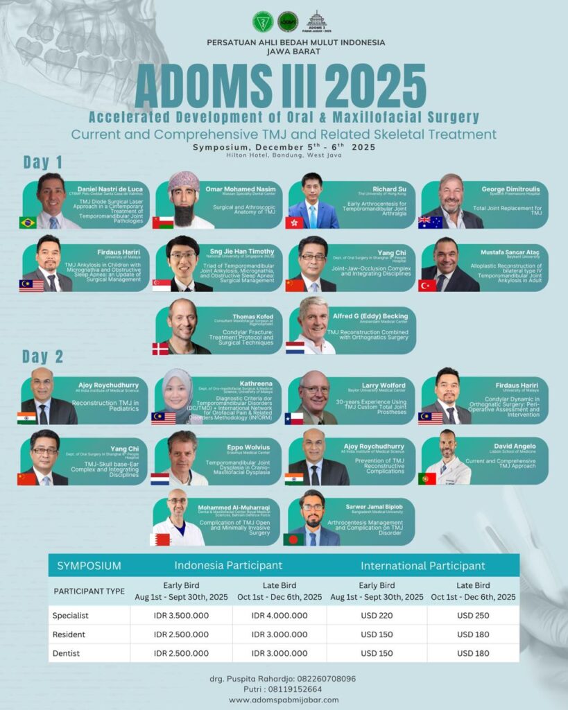 On behalf of the Organizing Committee, it is my great privilege and pleasure to welcome you to the third Accelerated Development of Oral & Maxillofacial Surgery—ADOMS 3—held here at the Hilton Hotel, Bandung, from the 1st to the 7th of December 2025.